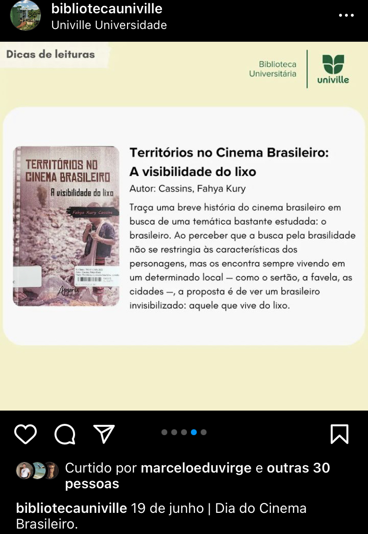 No último dia 8 de março, “Dia da Mulher”, me enviaram um post perguntando se eu sabia que uma conhecida colega professora de cinema da cidade estava no projeto de exibição de filmes do homem de quem fui vítima. Eu não sabia. Lamentei muito que uma mulher, que trabalha com jovens mulheres, esteja junto a ele neste projeto. O projeto, cabe dizer, na sua primeira versão, foi majoritariamente desenvolvido por mim, eu mesma fiz a inscrição por ele, no meu computador onde ele deixou salvo os dados de login. Sim, o abuso dele foi no campo pessoal e profissional. De perfil extremamente manipulador, com uma frustração muito grande por não se ver realizado na atuação na área do cinema, ele se aproximou de mim por isso, por também tirar vantagem do meu conhecimento e trabalho. Pelo menos fico feliz que hoje o espaço cultural no Aventureiro tem uma tela de projeção de cinema, item que eu havia colocado originalmente no projeto, para ser doado ao espaço.